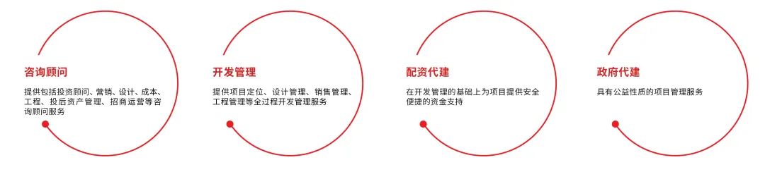 针对委托方的不同诉求,华远地产可提供咨询顾问、开发管理、配资代建、政府代建等形式的综合服务,为委托方在项目价值兑现,市场信用增强,融资方案优化,投资收益提升等方面发挥积极增值作用。