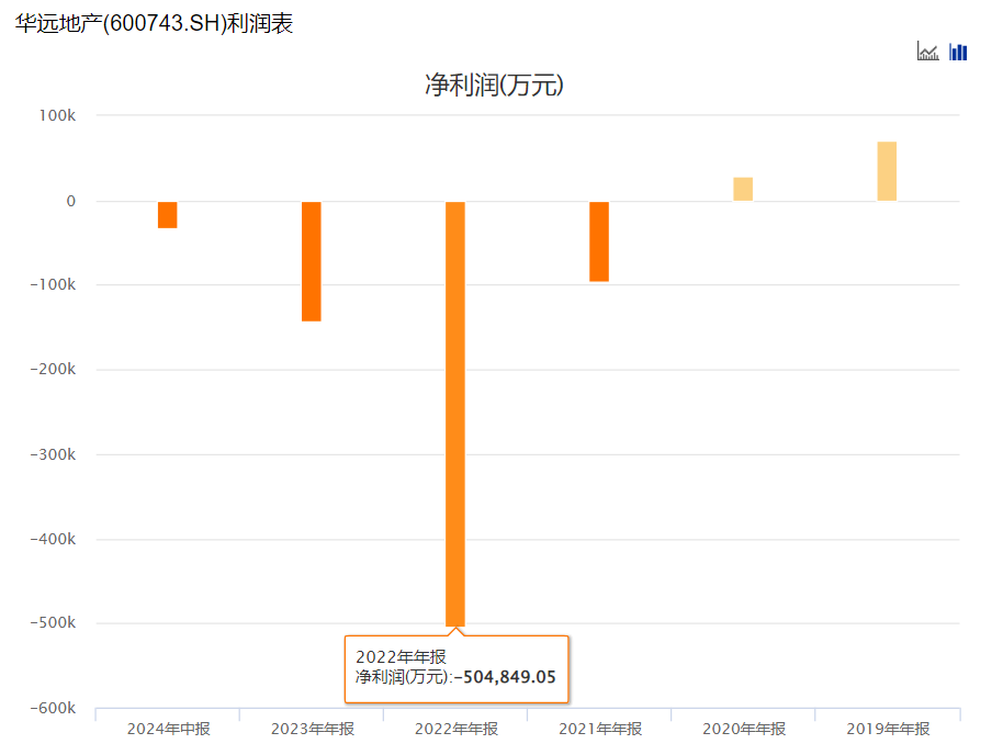 《财中社》注意到,自2021年以来,华远地产处于持续亏损状态。东财Choice数据显示,2021至2023年和2024年上半年,华远地产归属于母公司股东的净利润分别为-6.7亿元、-38.2亿元、-15.3亿元和-3.9亿元。资产负债率也持续攀升,2021至2023年和2024年上半年,华远地产资产负债率分别为81.5%、85.9%、88.6%和89.9%。