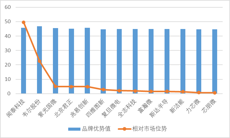 图1 “芯片”赛道企业品牌优势值和相对市场位势(100分制)