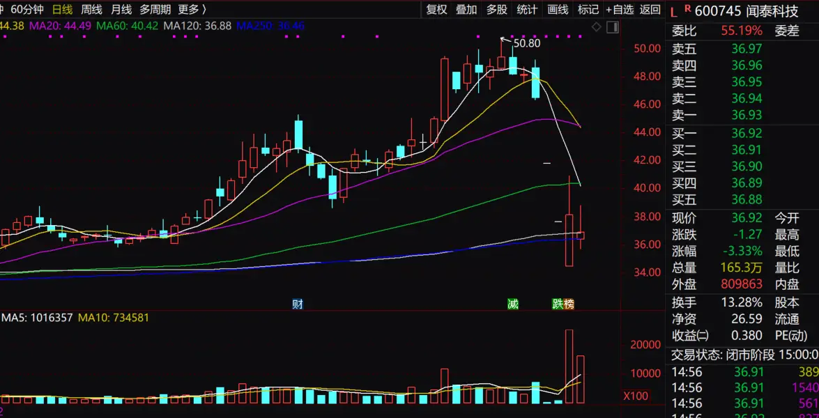 资本市场的反应立竿见影。10月10日开盘,闻泰科技股价应声跌停,直到10月15日经历两个跌停板后才勉强止跌,较事件前市值蒸发超百亿。东方财富股吧里,投资者的焦虑与分歧交织:有部分网友哀叹“五年布局一朝梦碎”,也有技术派分析“216 亿商誉减值风险才是真凶”,更有乐观者期待“国家层面介入破局”。