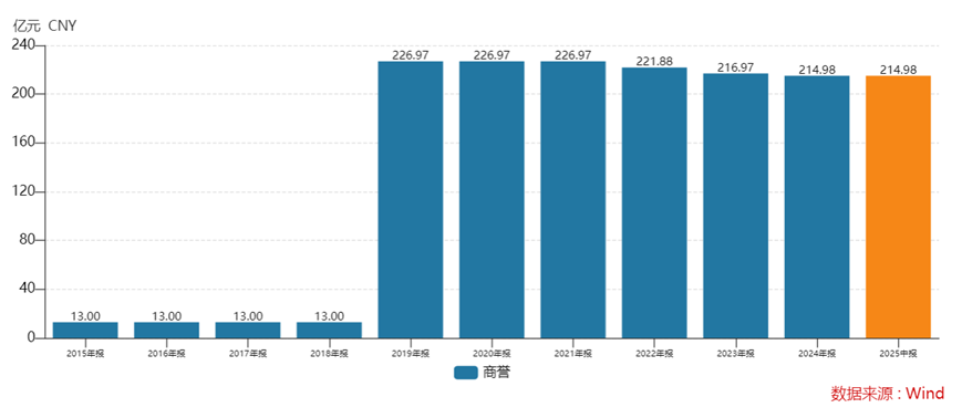 而且,闻泰科技收购安世半导体形成了巨额商誉。截至2025年上半年,公司的商誉总额为214.98亿元,这相当于公司净资产(346.43亿元)的62%。这笔巨大的虚拟资产,使得公司的净资产质量非常脆弱。