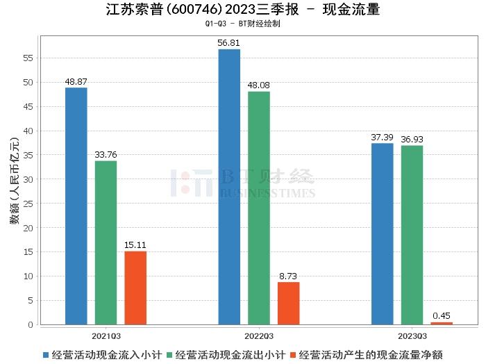 在现金流量方面,公司2023年三季度的经营活动产生的现金流量净额为4539.46万元,相比上年同期的8.73亿元大幅下降,主要是由于公司产品销售价格下降导致经营现金流入减少所致。经营活动现金流入小计为37.39亿元,相比上年同期的56.81亿元有所下降。经营活动现金流出小计为36.93亿元,相比上年同期的48.08亿元有所下降。