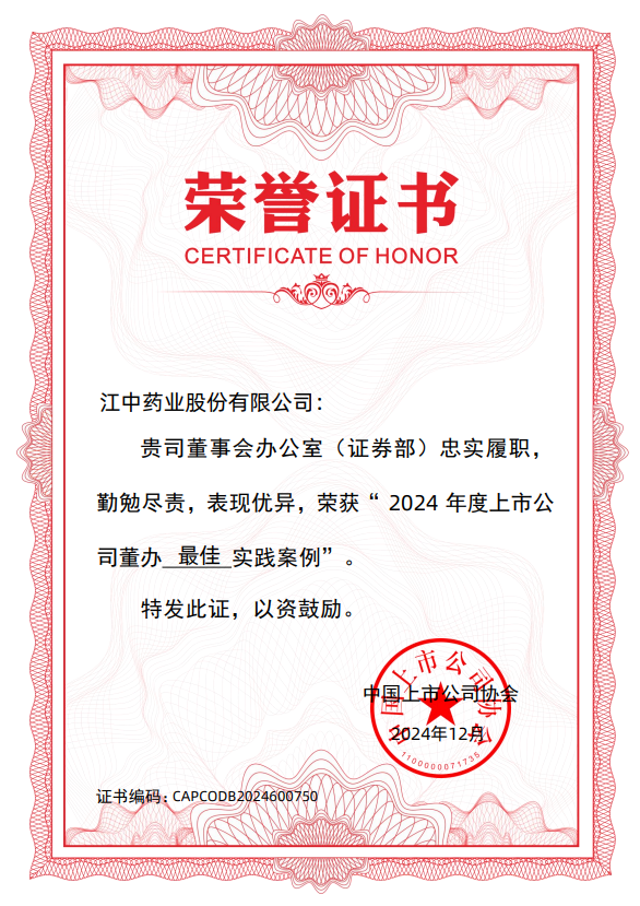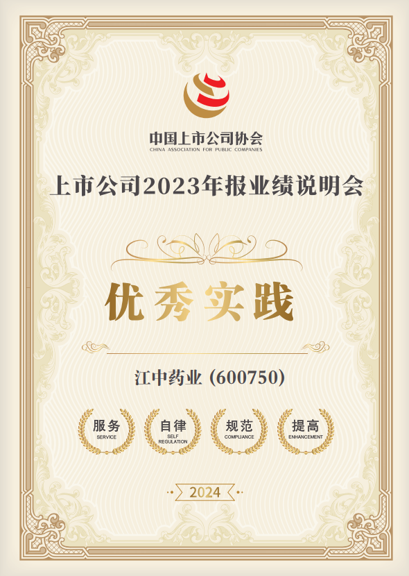 上述荣誉的获得体现了中上协对江中药业在规范运作、信息披露、投资者关系管理、ESG管理等方面工作的高度肯定。