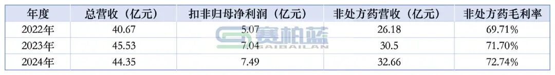 在肖文斌掌舵的三年多时间里,江中药业营收从2022年的40.67亿元增长至44.35亿元,利润也实现了稳健增长。其中,核心的非处方药业务营收由26.18亿元提升至32.66亿元,毛利率始终保持在70%左右的高位。