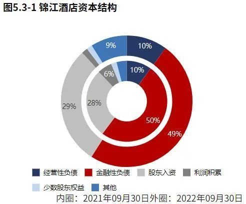 资金来源依靠“输血”。从2022年09月30日锦江酒店的负债及所有者权益结构来看,公司的资本引入战略为均衡利用金融负债、股东入资的并重驱动型。其中,资产收缩的过程中,主要是资金来源金融负债、利润积累的减少。