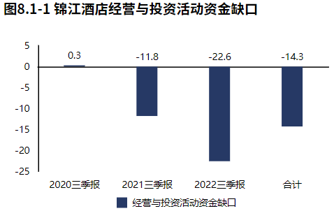 经营活动与投资活动无资金缺口。2022三季报锦江酒店经营活动与投资活动资金净流入22.61亿元,无资金缺口。2020年报到本期经营活动与投资活动累计资金净流入14.35亿元,无资金缺口。
