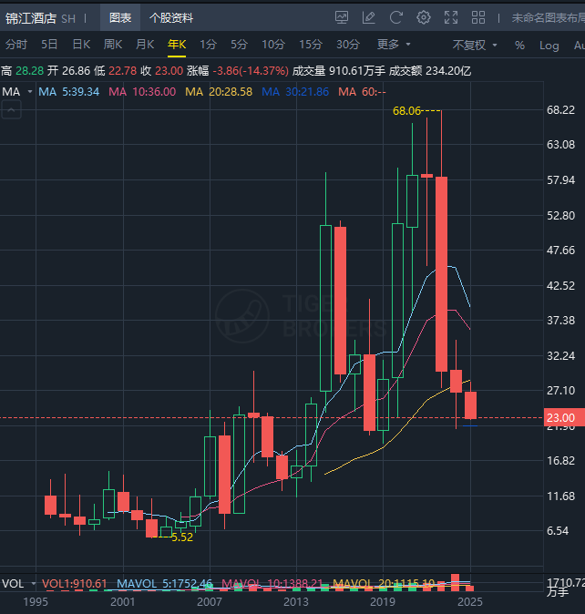 而锦江近些年肉眼可见地增速放缓,关键指标被华住、亚朵超越,股价更是在过去数年里大起大落仿佛跳楼机。