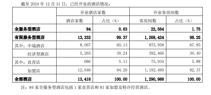 诚然,酒店轻量化运营是大势所趋。2024年末,锦江加盟店占比超过94%,但在品牌繁多,内卷竞争激烈的背景下,如此庞大的加盟占比,也对集团管理能力提出了更高要求。