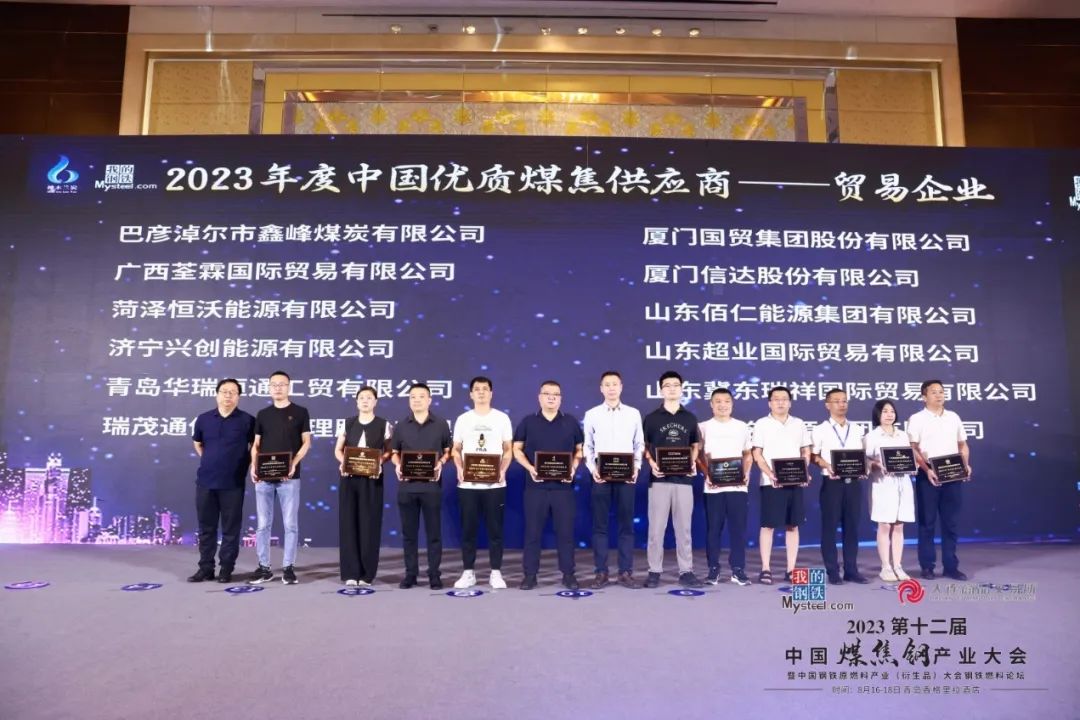 大会同期召开评选活动,国贸股份凭借在煤焦产业丰富的运营经验,诚信为本、共赢发展的经营理念,获得产业伙伴的赞誉和认可,获“2023年度中国优质煤焦供应商”和“2022-2023年度Mysteel煤焦价格指数诚信采价单位”两项荣誉。