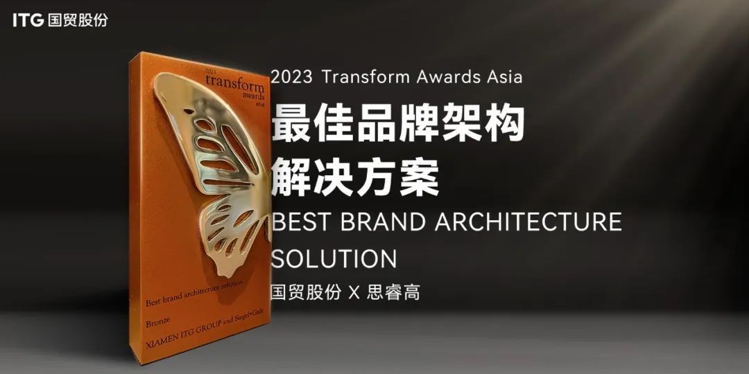 11月20日,2023年 Transform Awards Asia 大奖在上海揭晓。凭2022年品牌战略升级项目,厦门国贸集团股份有限公司(下称“厦门国贸”,股票代码:600755.SH)携手知名品牌战略设计公司 Siegel+Gale 思睿高荣获最佳品牌架构解决方案铜奖(Best Brand Architecture Solution - Bronze)。
