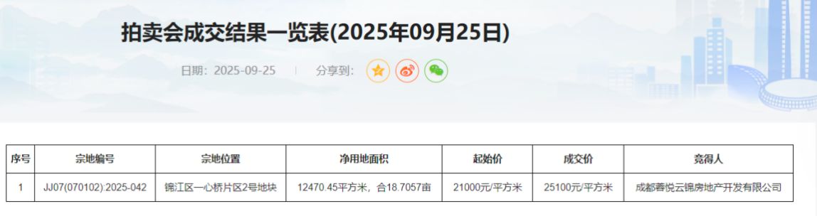 9月25日,成都锦江区一心桥片区一宗优质纯住宅用地公开拍卖,再次吸引市场广泛关注。最终,在经过42轮激烈竞价后,厦门国贸以25100元/㎡、溢价率19.52%成功摘得该地块,成交总价约7.83亿元,这是3个月内厦门国贸在该区域拿下的第2宗地块。