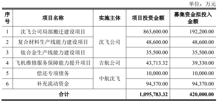 中航沈飞表示,本次募资能够进一步提升公司生产制造、试验试飞、维修与服务保障能力,增强公司核心竞争力,进一步优化公司资本结构。