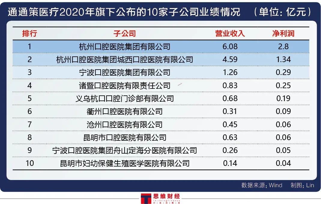 此外,通策医疗旗下的子公司宁口医院2020年的营业收入为1.26亿元,净利润为2946.41万元。另一家即将建成新的区域中心医院的诸暨口腔医院贡献营收8283.4万元,净利润为2504.25万元。