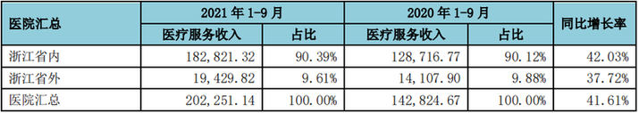 浙江省内外医疗服务收入构成及趋势(单位:万元)图片来源:公司公告