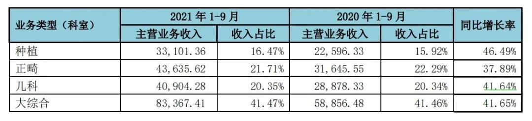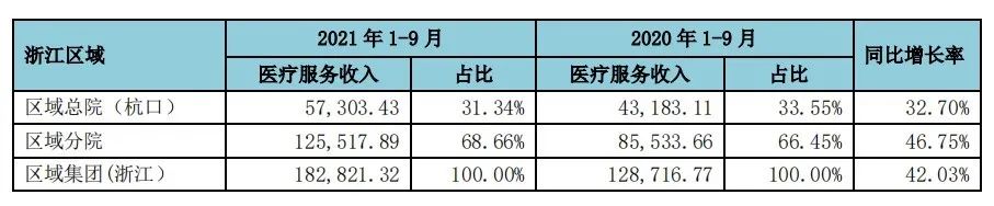 通策医疗浙江区域总院+分院的医疗服务收入构成,来源:三季度报
