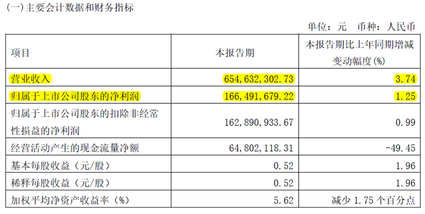 今年一季报,营收、归母净利润增长跌至个位数,分别为3.74%、1.25%。