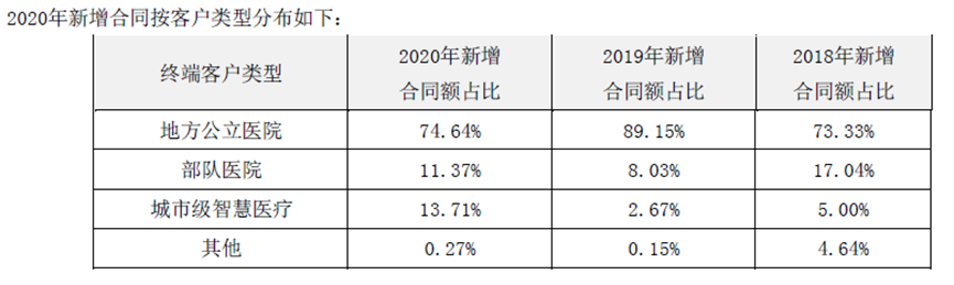 据和仁科技2020年年报数据,下游客户主要以地方公立医院和部队医院为主。