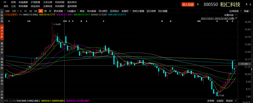 本次股份转让折合成本价9.76元/股,截至5月17日,和仁科技收盘报11.02元。