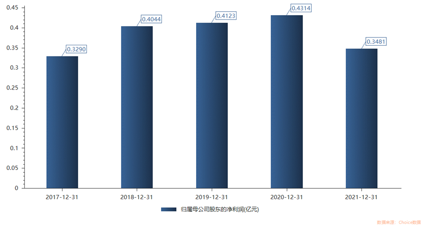 过去三年归母净利润分别为4100万、4300万、3400万,2021年同比下跌19%。