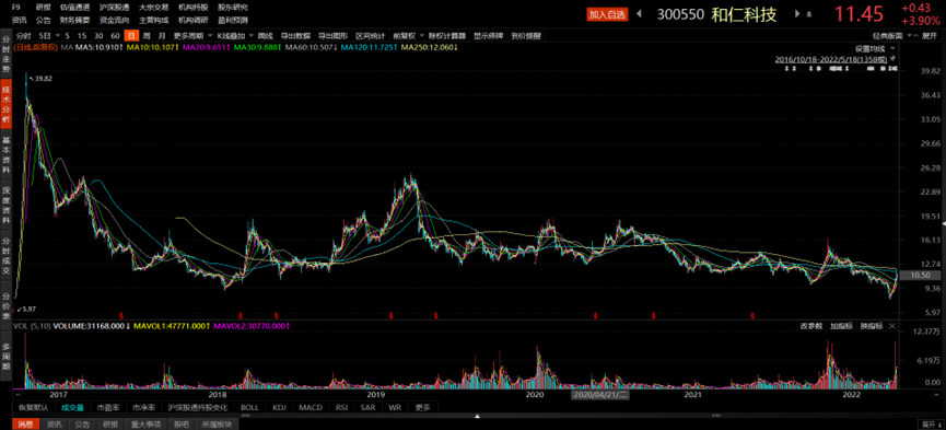 其次,和仁科技都快跌到历史底部了,现在进去就是抄底,而且还是比市场价打了个88折抄底,有何不可?