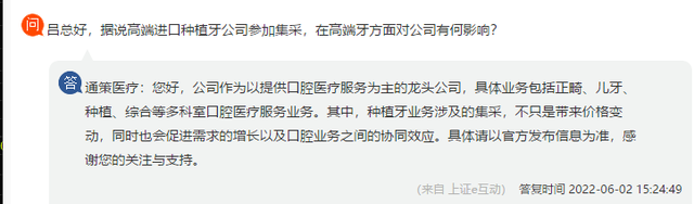 有投资者曾提问称,“据说高端进口种植牙公司参加集采,在高端牙方面对公司有何影响?”