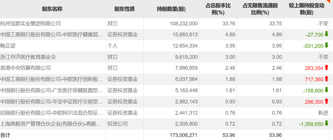数据显示,截至2022年第三季度末,通策医疗前十大流通股股东中包括5只基金产品。