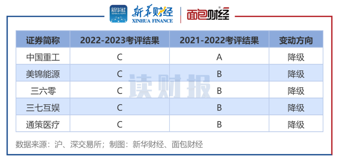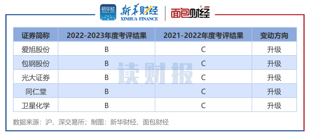 值得注意的是,爱旭股份、光大证券、同仁堂均由2020-2021年度的B级降为C级后,本年度上升为B级。