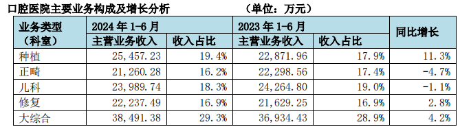 正畸和儿科业务:半年度营业收入分别同比下降4.7%与1.1%,占比也均有所下降。