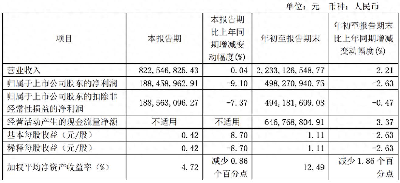 据通策医疗披露的三季报显示,今年前三季度,通策医疗实现营收22.33亿,同比增长2.21%;实现净利润4.983亿,同比下滑2.63%;其中,三季度实现营收8.225亿,同比增长0.04%,实现净利润1.885亿,同比下滑9.1%。