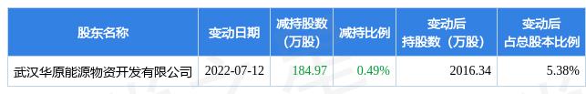 7 月 12 日祥龙电业发布公告《600769:武汉祥龙电业股份有限公司股东减持股份结果公告》,其股东武汉华原能源物资开发有限公司于 2022 年 7 月 1 日至 2022 年 7 月 12 日间合计减持 184.97 万股,占公司目前总股本的 0.4933%,变动期间该股股价上涨 0.0%,截止 7 月 12 日收盘报 8.55 元。