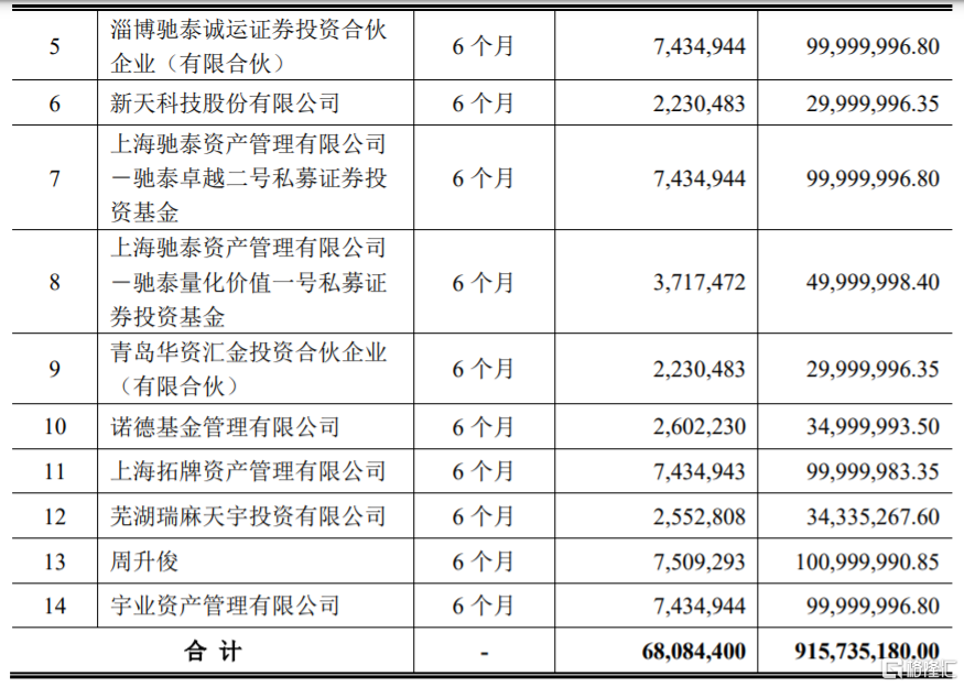 格隆汇9月17日丨汉商集团(600774.SH)公布非公开发行股票发行情况报告书,确定此次非公开发行股票的发行价格为13.45元/股,发行股份数量6808.44万股,募集资金总额9.16亿元。此次发行对象最终确定为14家,最终配售情况如下: