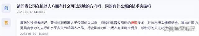 据亚威股份在互动问答平台介绍,子公司亚威徕斯机器人自成立以来,持续消化吸收引进德国技术,并与市场实情相结合,机器人产品更具市场竞争力。