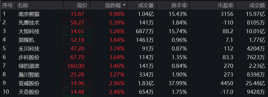 机器人ETF(159770)紧密跟踪中证机器人指数,截至2023年11月29日10:28,指数成份股中,南京熊猫涨停,先惠技术上涨5.39%,大恒科技上涨5.26%,郑煤机、禾川科技等个股跟涨超3%。
