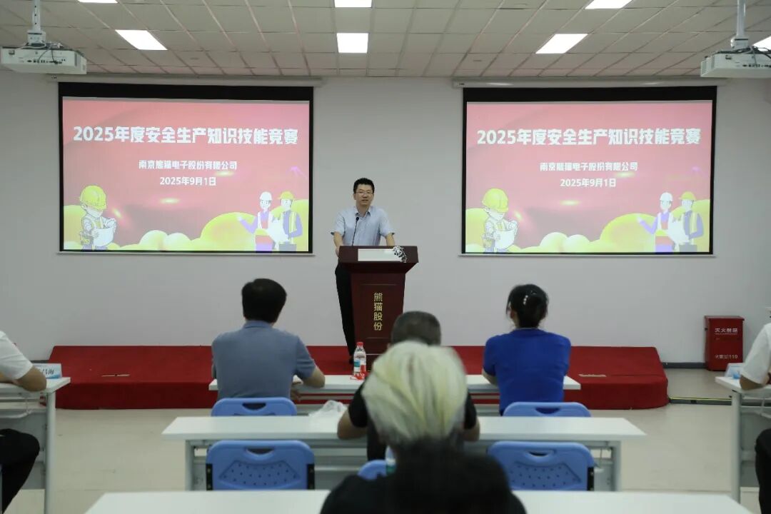 9月1日下午,南京熊猫电子股份有限公司2025年度安全生产知识技能竞赛在装备园区成功举办。南京熊猫副总经理邵波出席活动并讲话,所属产业公司党委副书记参加活动。公司工会副主席祁军主持活动。