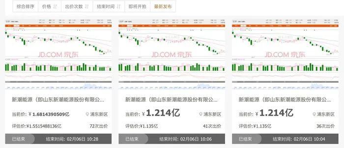 (新潮能源拍卖股份已成交;截自京东拍卖网)