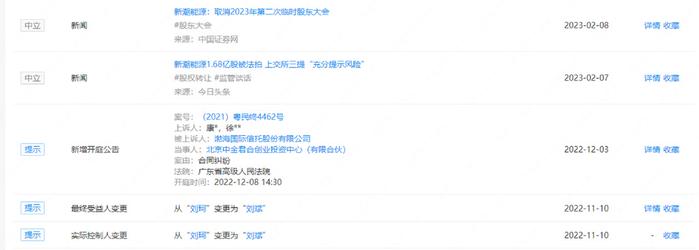 北京中金君合创业投资中心(有限合伙)背后的实际控制人为新潮能源现任董事长刘斌。企查查显示,2022年11月10日,北京中金君合实控人发生变更,由刘珂变为刘斌。而刘珂正是新潮能源前任董事长。