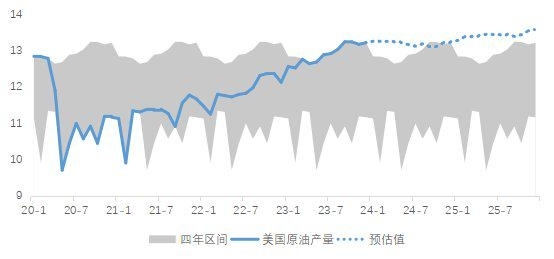 对于美国原油产量,据东吴期货研究所报告,EIA于一月报告中认为,在油井效率提高的推动下,今明两年该数据将继续增长至纪录高位,预计今年产量增至1321万桶/日,同比增加29万桶/日。