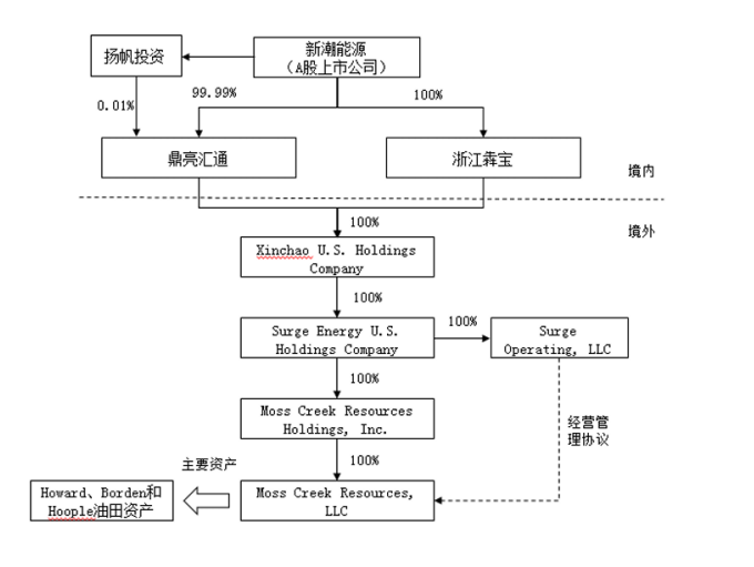 其中,宁波鼎亮持有Xinchao US 79%股权,浙江犇宝企业管理有限公司持有Xinchao US 21%股权。通过这两家公司,新潮能源间接控制全部美国油气资产。