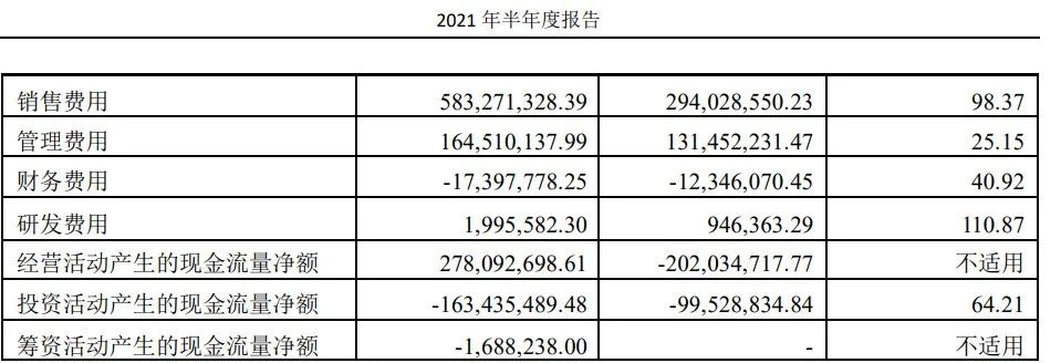 今年上半年,水井坊的销售费用高达5.832亿元,同比增长98.37%。5.832亿的数字,比同期净利润还多54.69%。