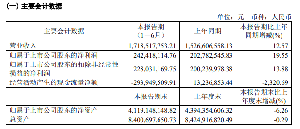 半年报显示,水井坊在今年上半年实现营业收入17.19亿元,同比增长12.57%;实现归母净利润2.42亿元,同比增长19.55%。从单季度表现来看,公司二季度实现营收7.85亿元,同比增长16.62%;实现归母净利润0.56亿元,同比增长29.60%。