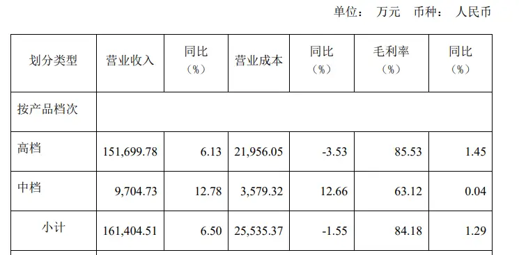 对此,兴业证券研报认为,第二季度收入环比显著改善,高档酒恢复较快增长,而中档酒受去年同期高基数影响,表现有所承压。