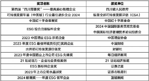 2024水井坊ESG评分再创新高,可持续发展领域再获显著成效