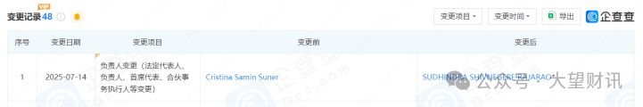 日前,水井坊(600779.SH)控股股东四川成都水井坊集团有限公司(以下简称“水井坊集团”)发生工商变更,公司董事长、总经理兼法定代表人由Cristina Samin Suner,变更为SUDHINDRA SHIVNEGERE RAJARAO,同时新增董事Bence Bokor。