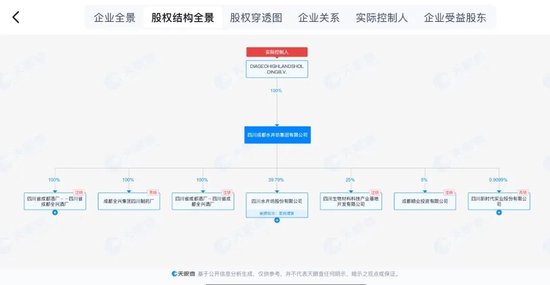天眼查信息显示,水井坊集团成立于1997年9月,注册资本1亿美元,由全球酒业巨头帝亚吉欧全资控股。水井坊集团目前主要对外投资即上市白酒公司水井坊,水井坊集团持有其39.79%的股份,为控股股东。