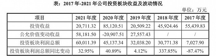 从近年来鲁信创投的投资收益来看,尽管公司每年投资收益均超过2亿元,投资板块利润总额稳步增长,但公司投资板块利润总额同比变动较大。而且2021年投资收益较上一年同比大幅减少73.8%,鲁信创投解释称,主要是上期通裕重工(300185.SZ)由长期股权投资转入金融资产核算及二级市场减持综合影响所致。