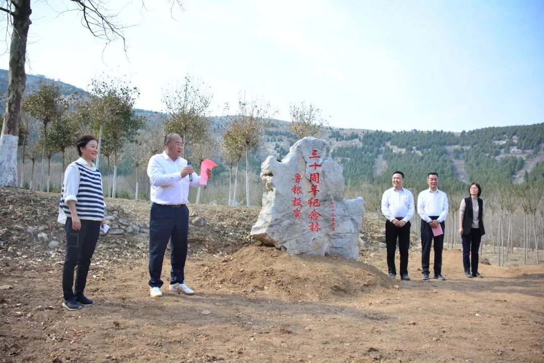 活动现场,领导班子共同为“鲁银投资三十周年纪念林”纪念碑揭幕。在领导们的带领下,大家分工协作,相互配合,挖坑、扶苗、培土、扶正、踩实,忙得不亦乐乎,热火朝天地种下象征着鲁银投资成立三十周年的树苗。
