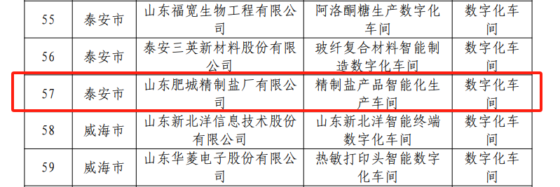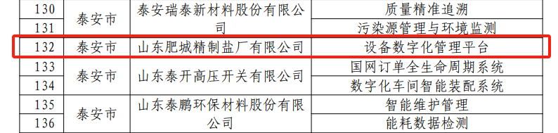 近日,山东省工信厅公示了2024年山东省级智能工厂、数字化车间、智能制造场景和系统解决方案供应商名单,鲁银投资所属肥城制盐组织实施的“精制盐产品智能化生产车间”和“设备数字化管理平台”两个项目,分别入选2024年省级数字化车间名单及2024年省级智能制造场景名单。