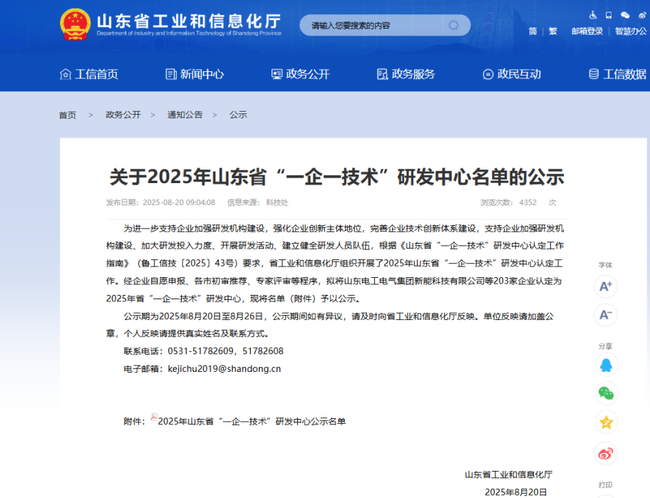 8月20日,山东省工业和信息化厅发布了《关于2025年山东省“一企一技术”研发中心公示名单》,鲁银投资所属岱岳制盐成功入选,标志着企业在技术创新和研发机构建设方面迈上了新台阶。