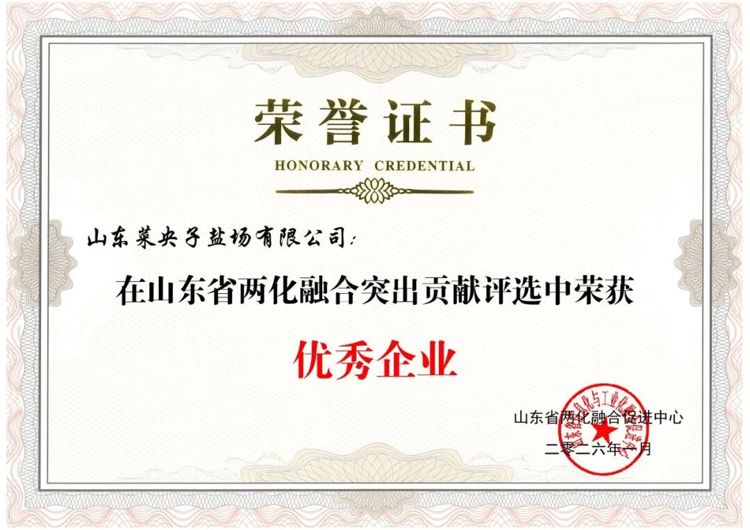 近日,鲁银投资所属菜央子盐场凭借在生产数字化建设、智能制造及两化融合实践方面的突出表现,成功获评“2025年山东省两化融合突出贡献优秀企业”称号。