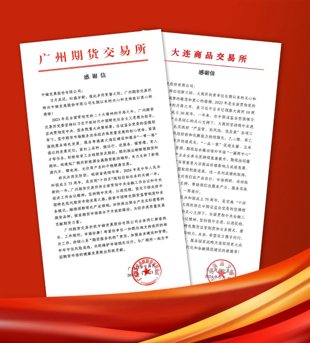 近日,中储股份继收到上期所感谢信后,又陆续收到大商所、广期所的感谢信。信中分别对中储股份给予其工作的支持表示感谢和赞许,并对未来合作寄予厚望。